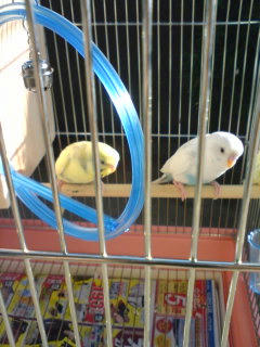 夜、止まり木にちょっと丸くなって並んで寝てる二羽を見てるとホント癒されます。